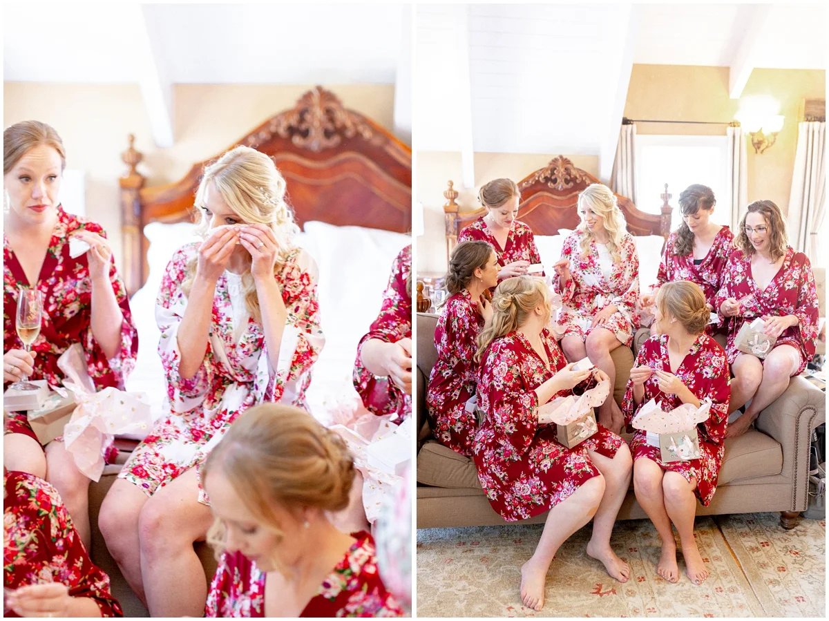 Jenni got ready at the historic MacCallum House Inn right in the heart of Mendocino. Her room had a beautiful view of most of the town and you could even see the ceremony being set up in the distance. Jenni greeted us with excitement as we began styling all her special details and ring box she so thoughtfully brought along. A champagne toast was shared with family and friends who had been in Jenni’s life for years before she slipped into her wedding dress.
